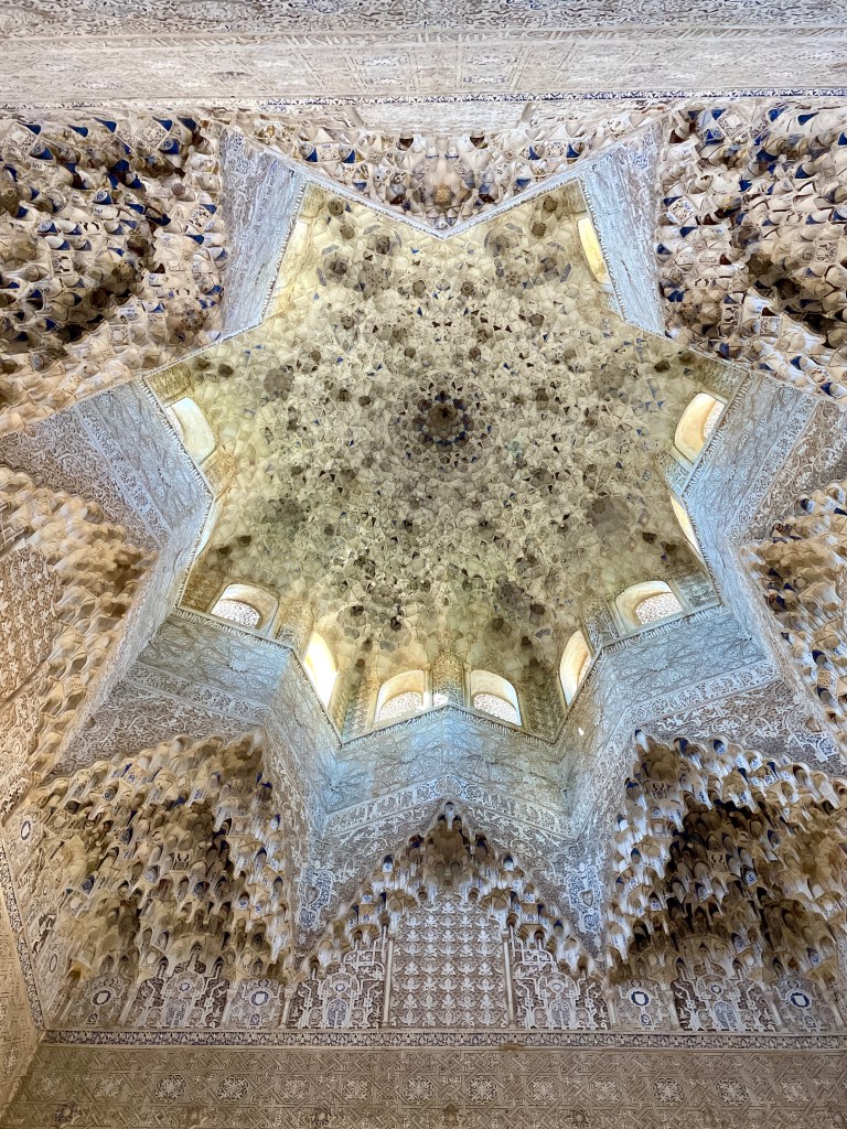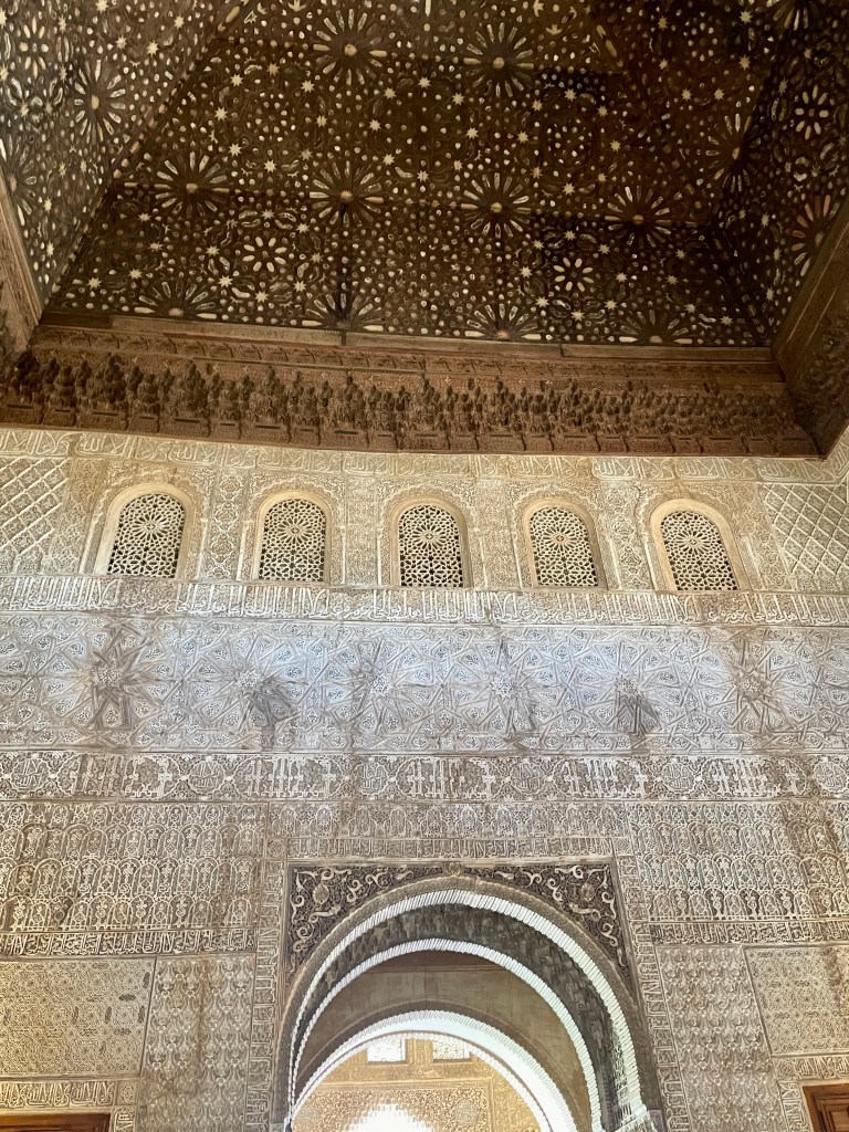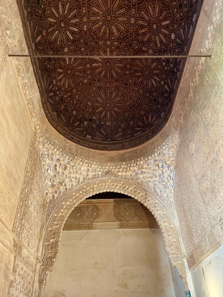 The Alhambra’s intricate details, scale and the craftsmanship were undeniably impressive. However, the use of numerous slender pillars and small patterned holes (designed to cool the space naturally) created a slightly unconfortable feeling for me. Look closer you can read the repeated inscription “There is no victory but Allah” decorates the walls and domes, adding a unique layer of cultural significance.