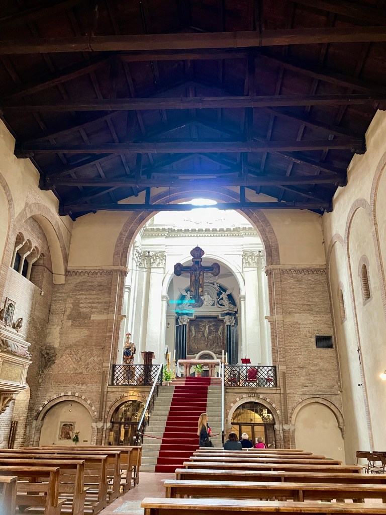Santo Stefano Complex: seven churches, each built in a different era and nestled together in one area. I noticed the very weathered unadorned brick wall, worn interiors, altars and sculptures.