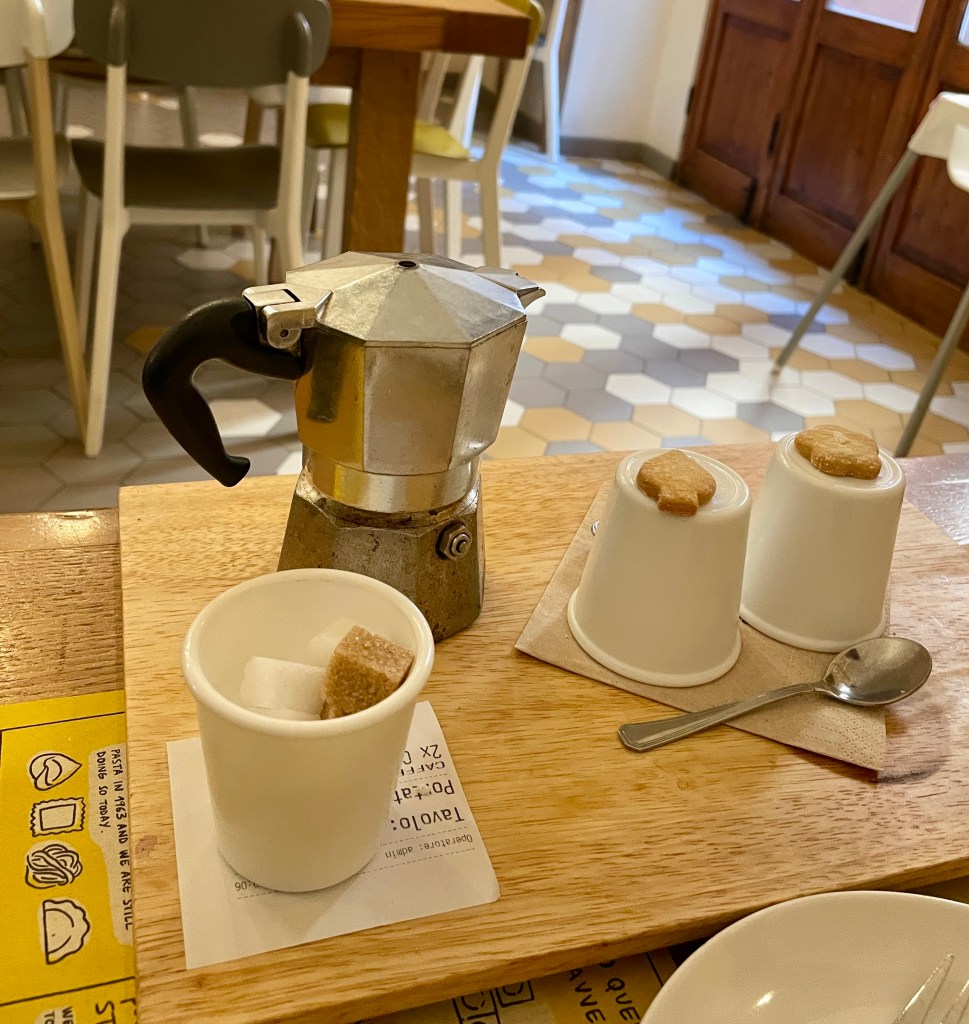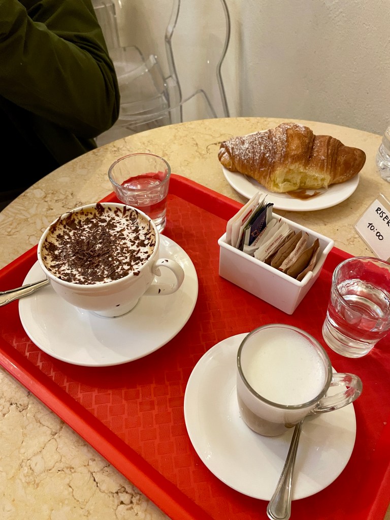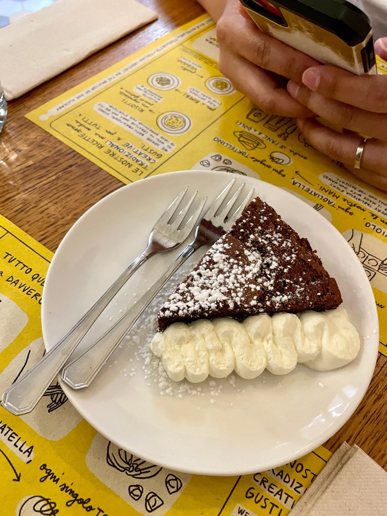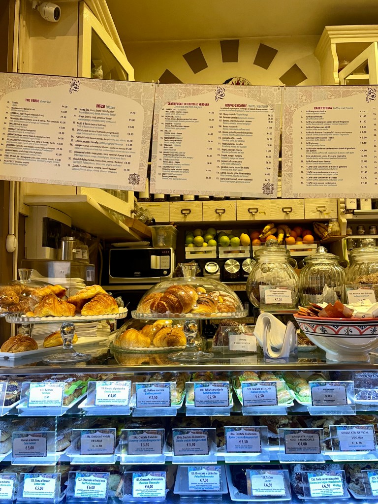 We swung by the place one last time before leaving Bologna, hoping to snag another meal. Bummer, they weren’t serving lunch yet. Settled for espresso and cake instead.