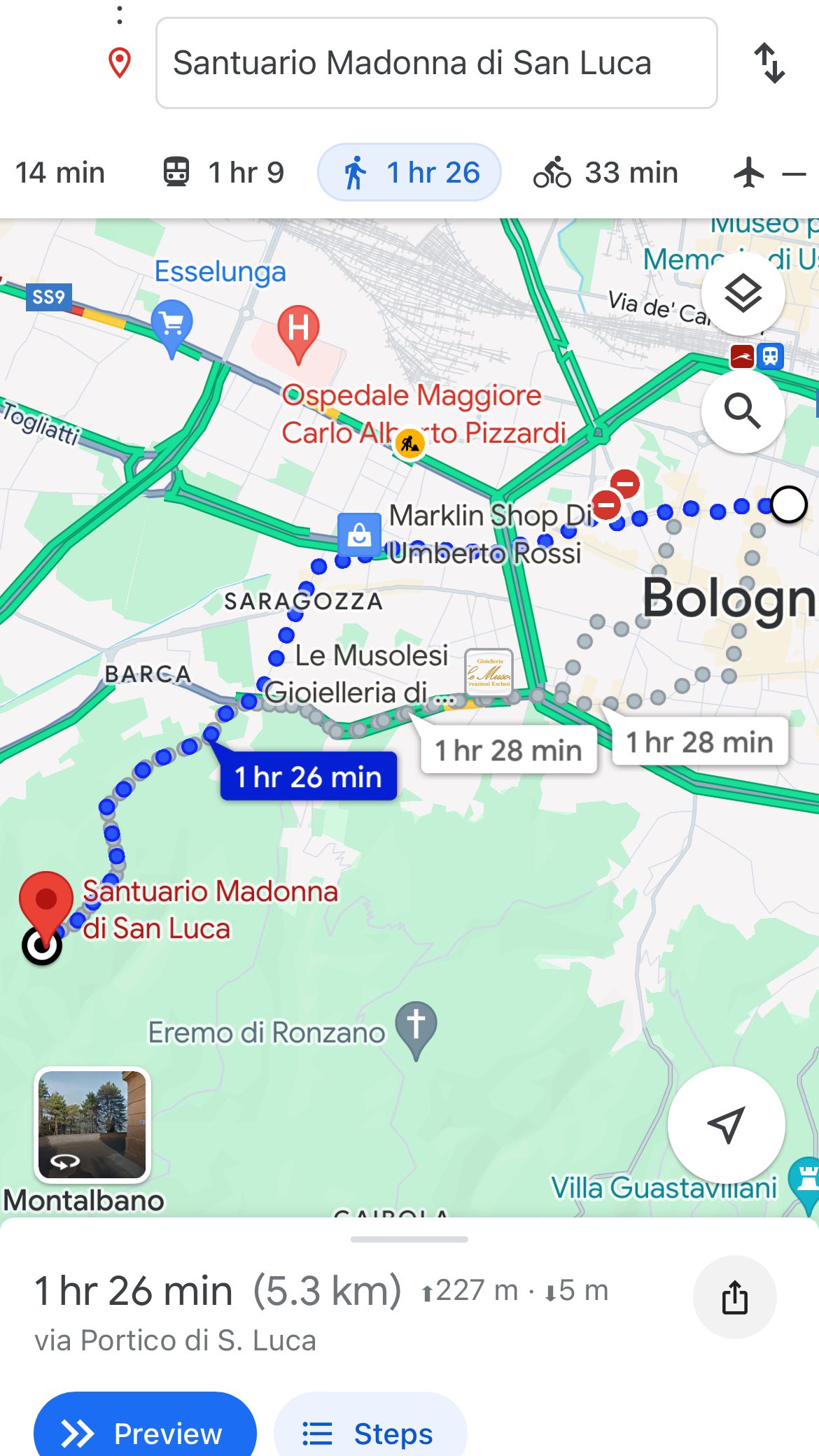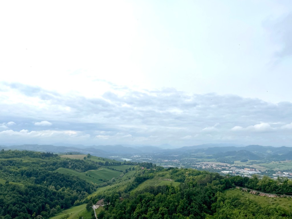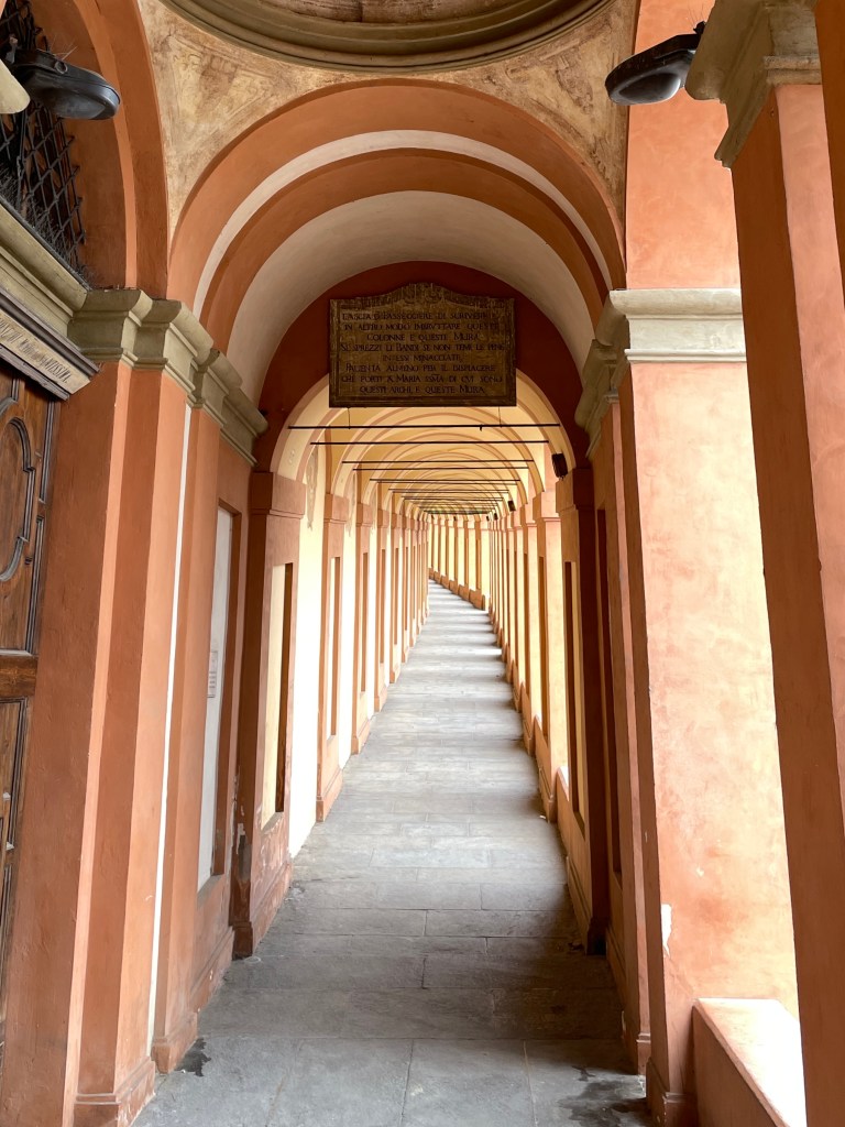 Santuario della Beata Vergine di San Luca: (The Sanctuary of the Madonna of San Luca) is a beautiful basilica church located up a hill Southwest of Bologna. It sits at a height of generally 300 meters above the city. It took us a sweet one hour and a half hiking thru 3.8 km portico started from Porta Saragozza (Portico di San Luca, it’s a UNESCO World Heritage Site). Don’t forget to bring a water bottle to stay hydrated during your climb!