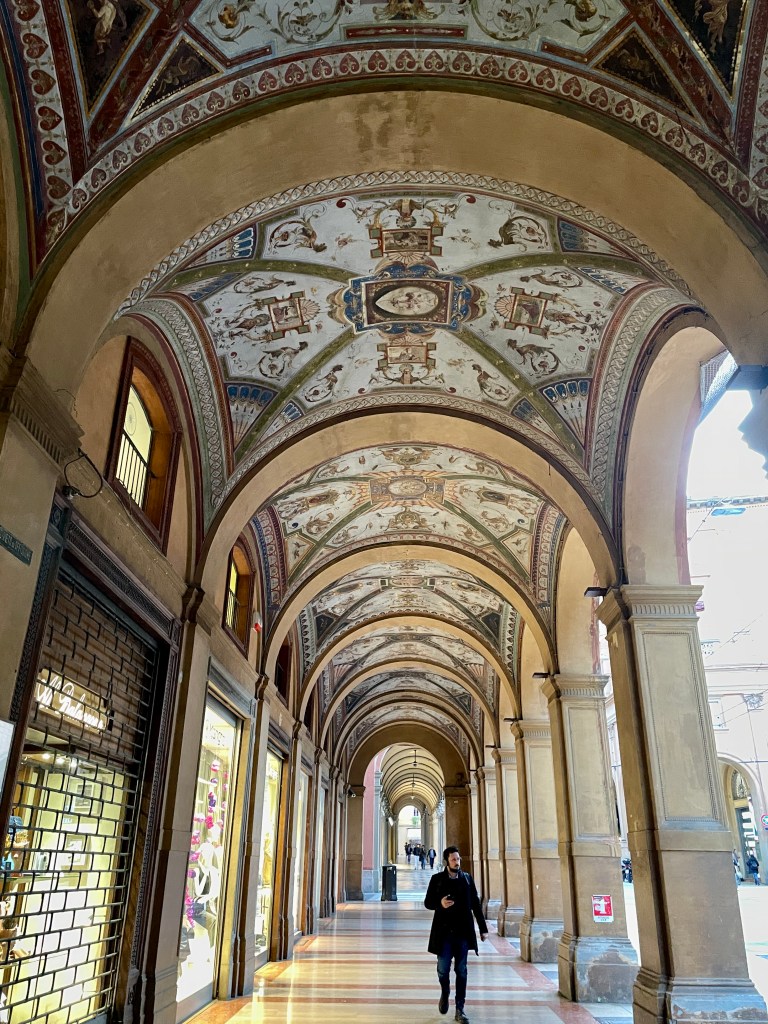 The portico outside Palazzo dell’Archiginnasio: